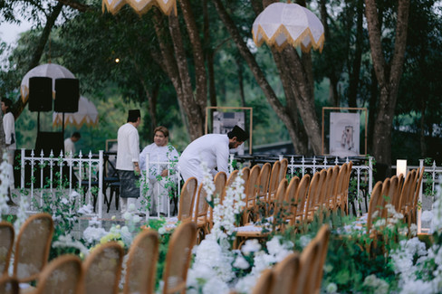 The ceremony space, designed by Jasamoure Concept, embraced a garden contemporary theme. Organic florals, all white, and refined textures transformed the venue into a living canvas. Elegant without excess, luxurious without ostentation.