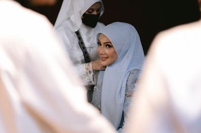 Erra Fazira was a picture of poise in a soft blue kurung by Rizman Ruzaini, a hue that represented serenity, clarity, and classic elegance. The bride's serene confidence was reflected in the silhouette, which embodied modern sophistication while honoring tradition. Erliyana Amira effortlessly styled her hijab, and makeupbydeqsha finished her look with a radiant, professional look. Sheema Henna Artist's delicate henna coated her hands, giving her bridal attire a modest personal touch.