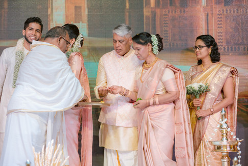 The solemnization ceremony commenced, marking the sacred union of Vivek and Mishallani. This heartfelt tradition signified the beginning of their lifelong bond, as they exchanged vows and promises, celebrating their commitment to one another in a deeply meaningful and spiritual way.