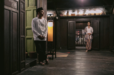 Dressed in classic elegance, they walked hand in hand beneath a grey, moody sky. The soft light and gentle breeze turned every moment into a living love story as if lifted from a page of old Malay legends.