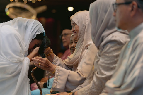 After the akad sah, they are finally declared husband and wife. Amir performs his prayer and completes the ritual by placing the ring on his beloved wife, Madiha. Following the akad, the couple receives salam restu, which are the warm blessings and well wishes from family and friends. They embrace them with love and support as the couple begin their new journey together.